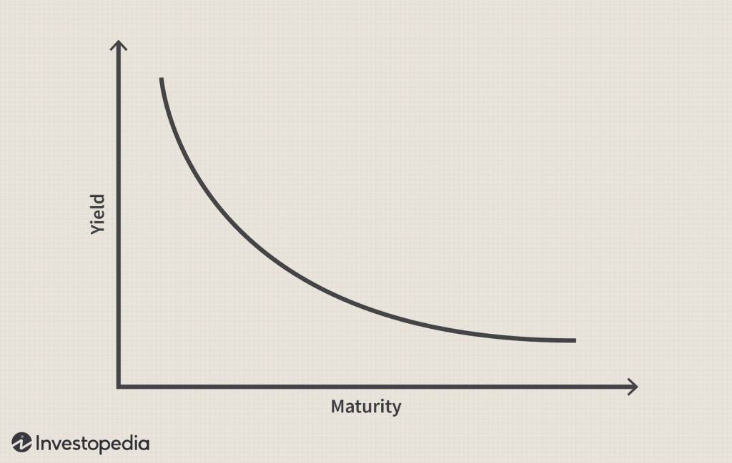 Pero cuando las condiciones económicas empiezan a estar “turbias”, La “yield curve” se aplana, pudiendo llegar a invertirse: